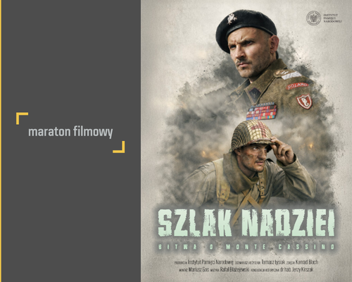 W sali konferencyjnej odbędzie się maraton filmowy serialu „Szlak nadziei. Bitwa o Monte Cassino” w reżyserii Tomasza Łysiaka, produkcja Biuro Edukacji Narodowej IPN. Odwiedzający będą mogli obejrzeć wszystkie 5 odcinków, poświęconych udziałowi Polaków w bitwie o Monte Cassino i losom żołnierzy 2. Korpusu Polskiego gen. Władysława Andersa. Serial został oparty na świadectwach weteranów, potomków bohaterów, mieszkańców Włoch i na badaniach historyków. Wykorzystano archiwalia i oryginalne plenery.