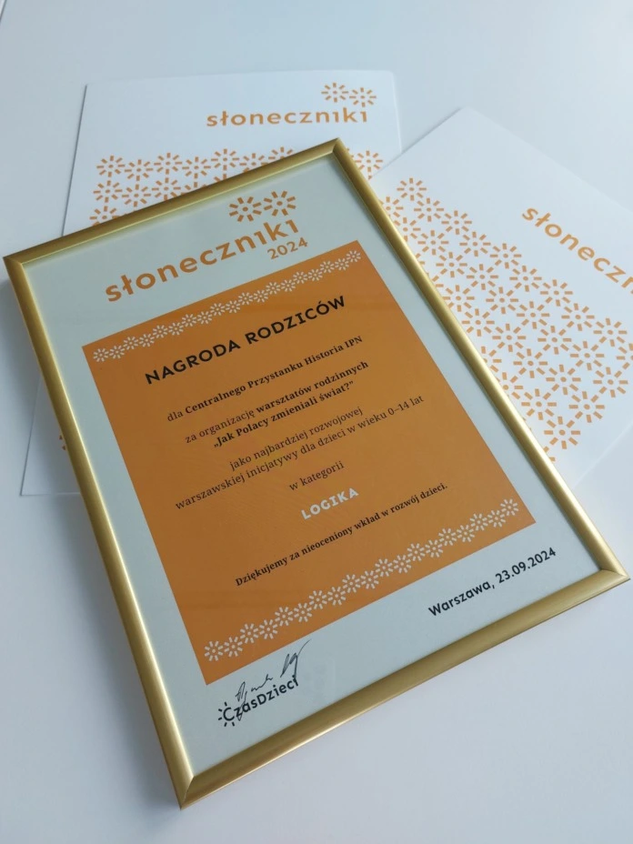 Warsztaty rodzinne „Jak Polacy zmieniali świat?” organizowane przez Centralny Przystanek Historia IPN otrzymały NAGRODĘ RODZICÓW jako najbardziej rozwojowej warszawskiej inicjatywy dla dzieci w wieku 0-14 lat w kategorii LOGIKA.